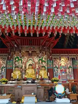 Haedong Yonggungsa Temple, standing against the backdrop of the sea, boasts a mystical and majestic atmosphere, just as its name suggests. As you stroll through the temple grounds, you'll be captivated by the intricate and splendid sculptures scattered throughout. The vivid depictions of dragons, Buddha statues, and celestial beings make you feel as if you're journeying through a mythical world. Particularly, the sculptures' colors glistening under the sunlight create a breathtaking sight, making it a popular spot for photography. The view of the sea from the cliff is truly overwhelming, with the sound of waves blending harmoniously with the chanting of Buddhist prayers, bringing a sense of tranquility. This temple is a harmonious blend of art and faith, offering both visual delight and emotional resonance.