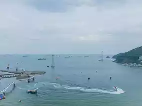 You can see the Songdo Marine Cable Car along with the sea,