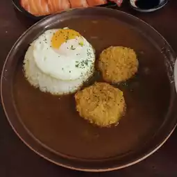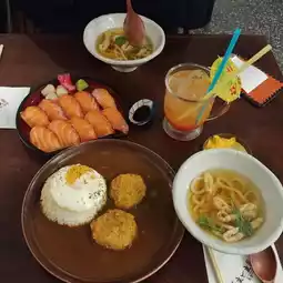 The menu offers a variety of dishes, including sushi, rice bowls, and curry.