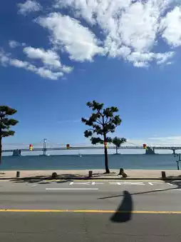 A close view as if you're eating on the stairs of Gwangalli Beach!