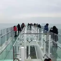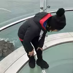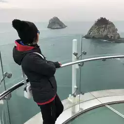 One of Busan's #popularattractions is the #OryukdoSkywalk floating on the coastline. The trail is named "OryukdoSkywalk" with the meaning of "walking in the sky". It is not only a well-known #photography spot, but also a #check-in spot for tourists to experience "walking in the sky". The Skywalk, which offers a panoramic view of the Oryukdo Islands, is built on a cliff at the end of the land. The 15-meter-long Skywalk is located on a 35-meter-high cliff and is made of iron pillars and 24 glass panels, extending into the sea in a horseshoe shape. When we put on anti-fouling shoe covers and stepped onto the glass floor with great trepidation, we looked down at the energetic waves hitting the cliffs, which gave us a strong sense of excitement. Standing in front of the skywalk, you can overlook the islands in the sea piercing the skyline that changes colors instantly. The unique scenery is unforgettable. This skywalk not only brings me a wonderful feeling, but also adds visual impact. It is very exciting and interesting! 🤪🤪
