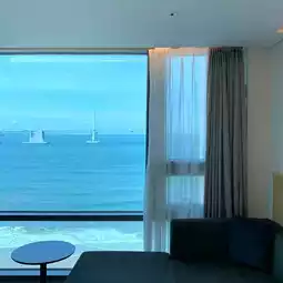 These days, some people prefer Gwangalli over Haeundae, and I am one of them. [Minrakhoe Town] is located here, so you can enjoy various things. Most of the hotels in Gwangalli are old, but Central Bay Hotel is newly built, but it is very clean and the facilities are good (modern modern). Above all, the ocean view through the large window that allows you to see the beautiful Gwangalli Bridge at a glance is impressive. Just staying still is healing~ It is cute to see the cars lined up inside Gwangalli Bridge! The hotel has rooms with bathtubs, so it seems even better in the winter~ Isn't it healing to enjoy a half-body bath and have a glass of wine by the window? I highly recommend Central Bay Hotel in Gwangalli