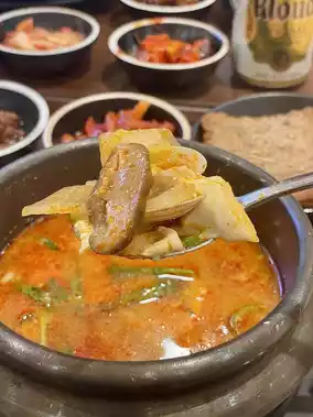 The Soondubu also had a strong seafood aroma and was delicious with lots of ingredients.