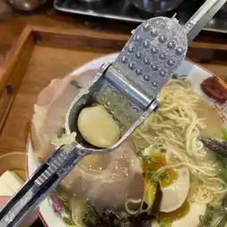 The broth is rich and oily, so you can't stop eating this addictive ramen!