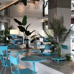 On the top floor of Twosome, there is Twosome Loft, and as you can see in the picture, it is quite different from the usual Twosome interiors we usually see! Since it is the top floor, the view is the best, and the cool colors that go well with the ocean make the space even more special.