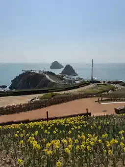 This is Oryukdo Sunrise Park where you can see the sea, flowers, and mountains at the same time.