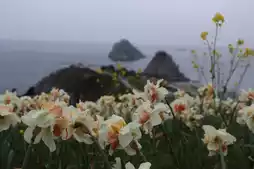 Rapeseed flowers and daffodils were in full bloom, facing the sea breeze!