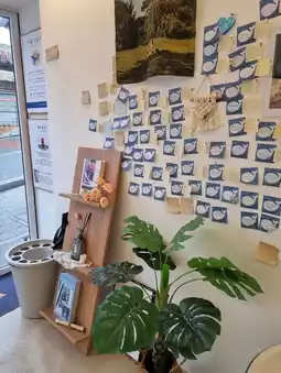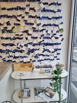 This place stands out with its neat interior and is characterized by its tranquility. The bright yellow sofa, wood-toned table, and clean white space are accented with hanging flowers and plants. In particular, the guest cards attached to the walls tell a warm story of this place.
