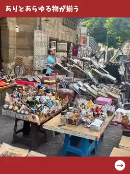With coffee shops and other attractions, it's a lively gathering place for locals and tourists, making it the perfect place to experience Egyptian culture and tradition. There are also many cafes and restaurants where you can enjoy local cuisine. Enjoying bargaining while strolling through the market is also one of its charms!