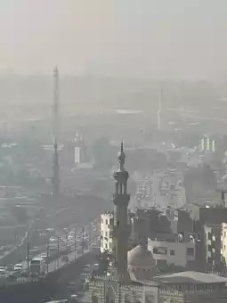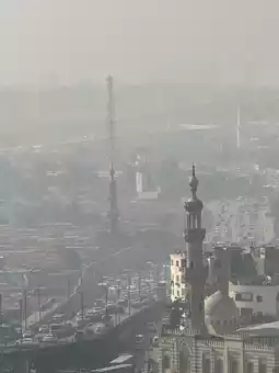Panoramic Gaze: From the courtyard, see all Cairo: pyramids to Mokattam Hills.