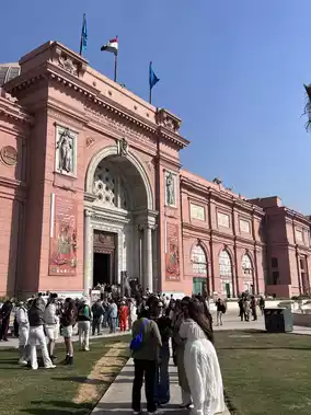 The Egyptian Museum, located in the heart of Cairo, boasts a classical-style building with a pink façade and an elegant, chic exterior. It's one of Egypt's most iconic museums. It houses over 120,000 precious artifacts, spanning prehistoric times to the Roman period. The collection is so extensive that a single day wouldn't be enough to fully explore it all, and every corner is a treasure trove of history.