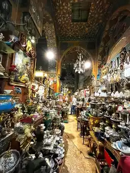 The atmosphere is alive with the sound of shopkeepers calling out, the aroma of fresh spices, and the sight of artisans carefully crafting their work. One of the highlights is enjoying a cup of traditional mint tea or strong Egyptian coffee at the historic cafés tucked inside the bazaar, where writers, poets, and travelers have gathered for generations.