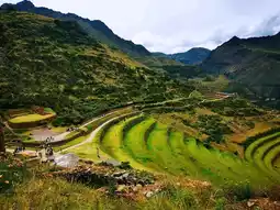 The site features houses built along the mountain, with stone walls and thatched roofs, exuding a strong sense of history. The small cavities on the mountain walls were once burial sites for commoners during the Inca period. The semi-circular terraces extending from the mountain down into the valley are truly spectacular. Hundreds of years ago, the Incas cultivated these terraces, but since being designated as a national cultural heritage site, they are now protected and no longer used for farming.