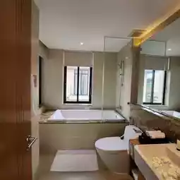 The first floor has a living room, kitchen, and bedroom 1, and the second floor has 2 bedrooms. If you only book one bedroom, they lock all the other rooms and leave only the first-floor bedroom open. If you book a two-bedroom room, they leave one bedroom on the first floor and one bedroom on the second floor open, and the remaining one bedroom on the second floor is locked. The pool villa is spacious and has a clean and stylish interior because it is newly built, so I liked it. There is a Samsung washing machine in the villa, so it was very convenient to do laundry. Powdered detergent is not provided unless you request it at an additional cost at the hotel, so we brought it from Korea in advance. There is a large refrigerator, so we were able to put fruits, water, etc. in the refrigerator, which was great. However, there was one fatal flaw. Although it is a pool villa, the pool is a bit small, so it is only big enough for children to play in. Our family only looked at it for decoration and went to the main pool to swim.