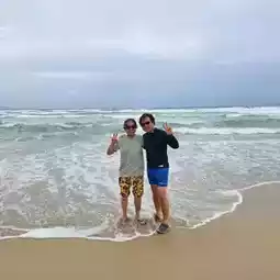 When you come to a 5-star resort, you want to experience everything here and there. When I went to Wyndham Garden Resort, I wanted to go to the private beach and read a book and enjoy leisurely, but I couldn't stay long. My mother wasn't in good condition so she couldn't come out, but I took pictures on the beach with my father and husband and made a lot of happy memories. There were only guards and our family, so it was quiet and nice.