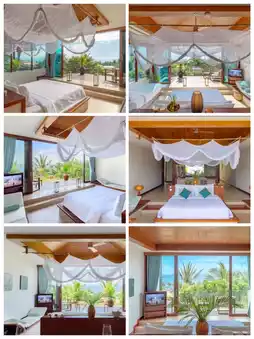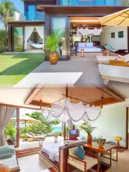 The hotel's location is unbeatable ๐, situated right on the beachfront, where the vast ocean meets the soft sandy beach. Gentle waves lap the shore ๐, and the sea breeze carries a refreshing ocean scent. Surrounded by lush tropical plants and vibrant flowers, the resort creates a perfect tropical getaway atmosphere. Witnessing the sunrise over the horizon ๐