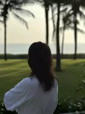 I simply gaze at the sea framed by palm trees, lost in thought.
