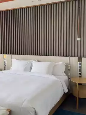 The resort's design combines modernity with a local touch. Rooms feature soothing, soft tones, abundant natural light, and private balconies offer unobstructed views of the sunset over the sea. A comprehensive range of facilities, including a beachfront pool, fine-dining restaurants, a luxurious spa, and a fitness center with stunning views, ensure every moment of your stay is a truly enjoyable one.