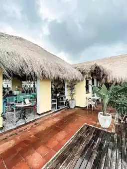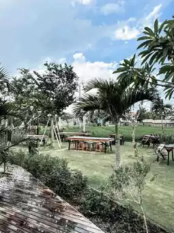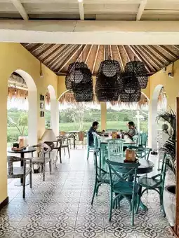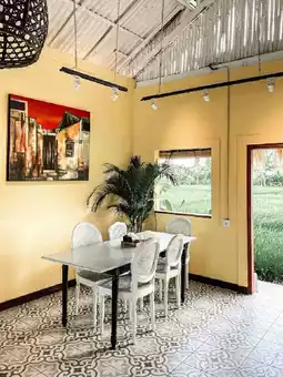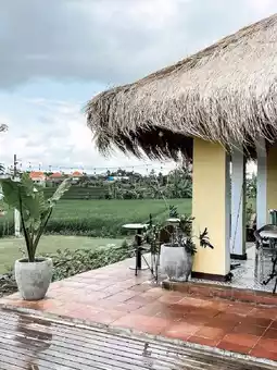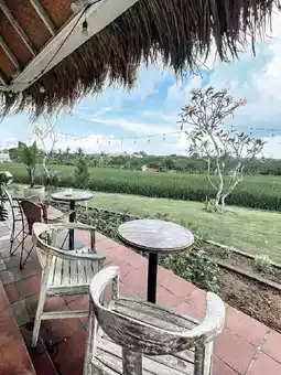 At first, I thought this place was really nice and located in the middle of lush green fields, so I decided to stop by. However, I didn't expect to like the food that much. Try the Pho Sai Gon. We ordered the medium size (50k), but it was already a really large portion. The broth was fresh and flavorful, the vegetables were just right and not too much (I usually eat too many vegetables when I have Pho 😆), the noodles were very soft, and the beef was generous and really tender. It was perfect to have on a rainy day, which made it even more delicious 🤤👌🏼 Oh, and I really love fried food, so I ordered a side dish as well and ended up getting the Cha Gio (45k). These are spring rolls served with sauce. They were really tasty!! If I'm ever in the Canggu area, I would definitely come back. The food is really delicious, and this place is great for relaxing! 😆😆