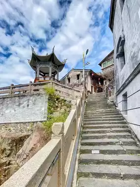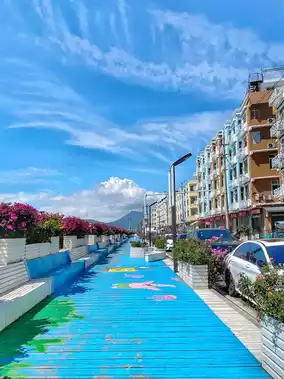 The century-old streets and alleys near the pier have a strong sense of age, with bluestone roads, stilt houses, mottled stone steps, painted stone walls, and well-preserved distinctive buildings in Nanyang, Republican, and Islamic styles, coupled with the slow-paced life of the city. The blue and white Mediterranean-style buildings on the seaside hillside give the town a modern feel and European seaside style.
