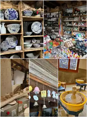 ✔️ On the way to Wanyao Village, you will encounter some records on how ceramics should be made, ▶️ as well as some exhibition halls, ↙️ and some souvenirs such as ocarinas, porcelain cups, glassware, etc. There is a beacon kiln on the top of the mountain, 🔼 and a terraced kiln, but bowls are no longer fired here.