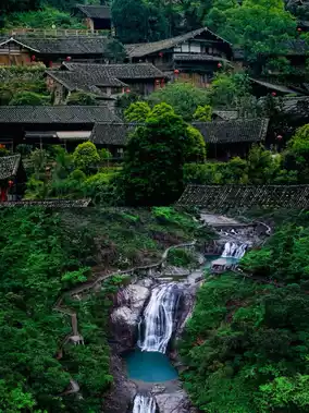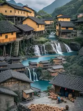 In addition, there are three-tiered waterfalls near Wanyao Village, each waterfall is 30 to 40 meters high, and below the waterfall is a bottomless green pool, adding natural beauty to the area. Although the buildings in Wanyao Village are old, they still retain their original structure and style. Some houses are divided into five floors according to different uses along the mountain, which is a wonderful design of a building within a building.