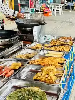 ✅Street snacks: fish balls, seaweed cakes, and lantern cakes.