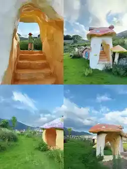 Here, you’ll find a dreamy Hobbit mushroom house built on terraced fields 🍄.