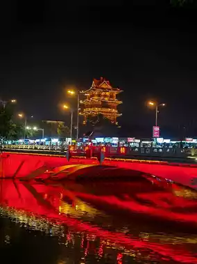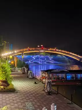 There is a water curtain at Cangqu Bridge, showcasing the features of Cangzhou. Very nice!!