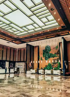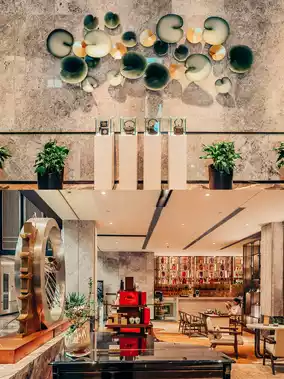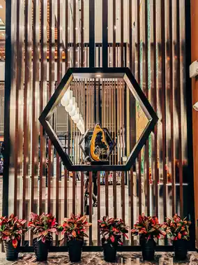 🌟The hotel lobby is decorated with new Chinese-style bronze metal grilles around it, and the artistic glass is used as the hotel's welcome background wall, which is antique and gives a luxurious feeling.