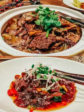 ๐ The restaurant offers a wide variety of dishes, including Cangzhou specialties and classic dishes. Hejian donkey meat is a signature dish, and locals love the tomato noodle soup, farmhouse stir-fried pork, and king oyster mushrooms. The restaurant is very cost-effective, with an average price of less than CNY 100 per person.