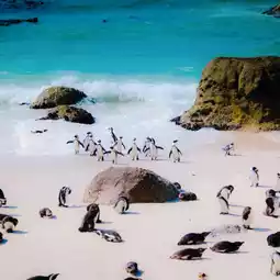 Boulders Beach, a seaside paradise, is a tranquil cove located south of Simon's Town and is renowned as a sanctuary for wild African penguins ๐ง. These penguins are the only species native to the African continent, and you can see them right here at Boulders Beach! They're absolutely adorable ๐๐. Watching them waddle along the sandy shores or play in the ocean is simply irresistible โจ.