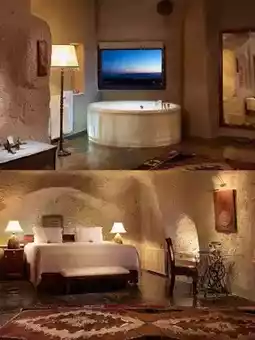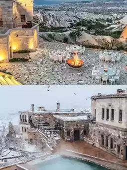 Located on the hillside under Uchisar Castle, the hotel is rebuilt from caves and houses with thousands of years of history, overlooking the magical and magnificent Cappadocia like another planet.