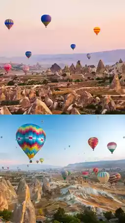 Start in Cappadocia, a land of uniquely shaped volcanic rock formations, naturally eroded into a breathtaking landscape. A must-see highlight is a morning hot air balloon ride over the valleys and stone villages, catching the first rays of the sun—an unforgettable sight.