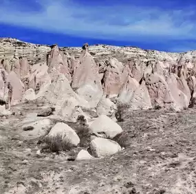 The bizarre rock formations of Cappadocia in central Turkey are unforgettable. Millions of years of weathering and volcanic activity have shaped these lands into towering fairy chimneys and fairytale-like rock houses.