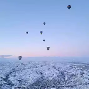 One of the most unforgettable experiences is seeing the hot air balloons rise above the white valleys. The contrast of colorful balloons floating over snow covered fairy chimneys is truly breathtaking and unique to this season. Even in the cold the atmosphere feels warm thanks to local hospitality and hearty Anatolian food.