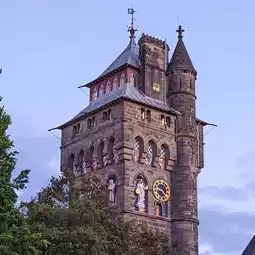 • Clock Tower & Castle Grounds – The Clock Tower (≈ 132 ft / 40m) with its decorative statuary; the motte offering views; and large green spaces around castle walls, including Bute Park, give scope for exploration.