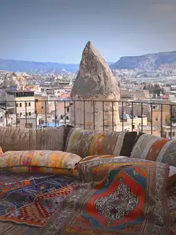 I call it the city of cavemen because the whole city is in a landscape with mountains all over the city. The highlight of staying in Cappadocia is that we have to sleep in caves and the balcony view is amazing, like nowhere else. And each accommodation must be decorated in a very Turkish style, giving a very beautiful feeling. For those who like taking pictures, prepare your clothes. I guarantee you won't be able to resist. Your phone memory will be full for sure.