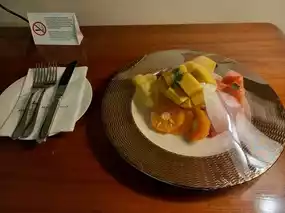 I was welcomed with plate of tropical fruits on table. Room quite humid, old and rundown. weather here is super hot that it reach 33 degree. Breakfast is damn good! All local dishes available. Service is great too! People here are friendly and helpful especially Juvy!