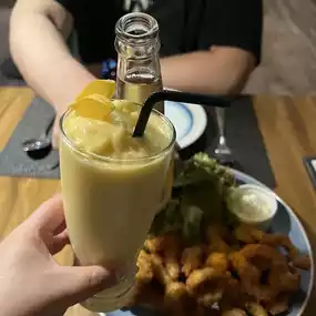 Try the crispy calamari rings and soft, chewy tapas~