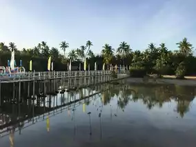 The lush mangroves can be explored through a bamboo boardwalk that leads to the sea or by renting a kayak on site. For those who want to grab a bite, a community-run restaurant is conveniently located by the entrance.