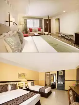 The swimming pool is situated alongside the hotel's courtyard path, with many guest rooms on the right-hand side, providing easy access to the pool. 😀😀 Upon entering the room, the ambiance feels somewhat vintage, which is likely the hotel's unique style. 📀📀 Safety is a top concern for most guests, and although the room doors are a bit old, ❤️ they have double locks. The security here is quite good, so there's no need to worry. After settling in, the hotel provided us with two vouchers for 😃 welcome drinks. The weather in the Philippines in February is lovely, with mild sunshine and not too hot, making it enjoyable to have a free welcome drink by the poolside in the afternoon. The room rate includes a complimentary buffet breakfast ⛱️🌁, and you'll need to present a breakfast voucher when entering the dining area. Breakfast is served from 6 am to 10 am ⛱️.