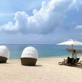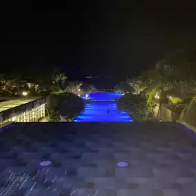 The hotel features an infinity pool with a view of the sea, providing enjoyment for both children and adults. The private beach owned by the hotel offers marine activities for an additional fee.