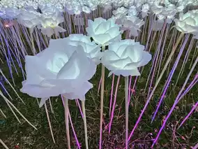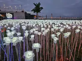 A chill-out place where you can relax and unwind by the sea. The atmosphere is very nice. The gimmick here is that there are 10,000 roses. They are roses that were created at night. At night, they will be lit up to create a rose field.