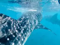(Nag rent kami ng go pro worth P550.00 , para may pictures kami underwater. Enjoy ang experience with whale sharks kaso kailangan matindi kapit mo sa kawayan Lalo na kung di ka marunong lumangoy.)