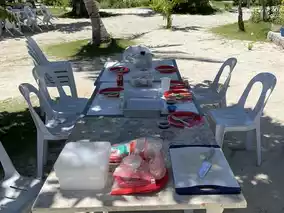 When we arrived Nalusuan Island, we paid an environmental fee of P100 per head. Use of tables and chairs are free of charge. They also have a comfort room but take note, they only use salt water. so if you want fresh water to wash then bring your own fresh water.
