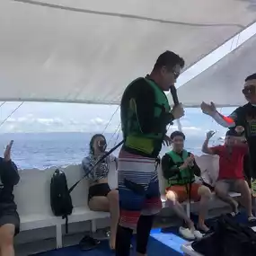 After taking a boat for about 30-50 minutes, we got on the boat, put on our gear, and played in the water.