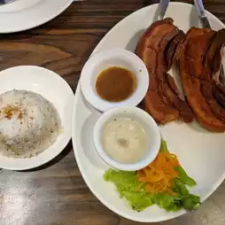 Since it hadn't been long since we had breakfast at the hotel, the four of us ordered Lechon kawali, Inihaw na Pisit, and Garlic Rice for our food.