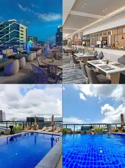 The hotel has a restaurant and a pool, and the night view of the city is beautiful. The rooms are clean and well-maintained.