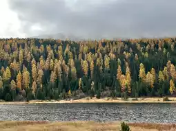 🍂 This lake is known for its calm, windless waters and its surrounding mountains, dotted with only larch trees. This type of pine only changes its leaves to yellow, brown, and gold, and grows only in limited areas, at altitudes of 1,500 meters above sea level.